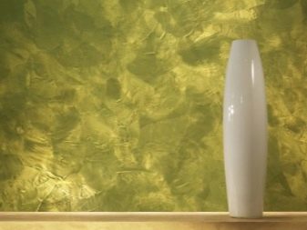 - جص حريري أو ورق حائط سائل هي مادة للديكور الداخلي. تحتوي التركيبة على ألياف وبوليمرات السليلوز ، والتي تعطي تأثيرًا مخمليًا خاصًا على الحائط. يتم استخدام ظلال الضوء بشكل أساسي.
