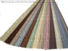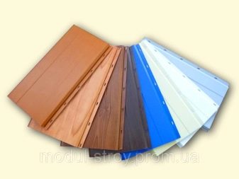 يحظى هذا الخيار بتقدير كبير نظرًا للعديد من ميزاته ، سواء المحتوى الفني أو الخارجي. أولاً ، تتمتع الألواح بمجموعة واسعة من الأبعاد. وهي متوفرة بعرض من 12 سم إلى 55 سم. يتراوح الطول من 2 إلى 6 أمتار. ثانيًا ، يسمح التلوين والمعالجة للمادة بأن تكون أقرب ما يمكن في المظهر إلى النوع الذي تم تصميمه تحته (عادةً الخشب أو الحجر). أيضًا ، يتيح لك طلاء البوليمر المستخدم في معالجة البلاط المعدني إنشاء مزيج جميل من السقف المعدني والجدران المزينة بجوانب فولاذية.