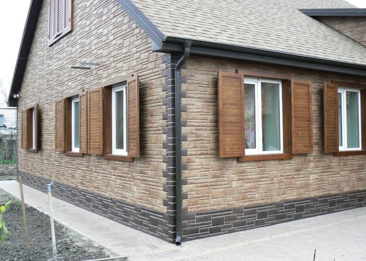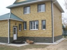 يقوم بعض الأشخاص أحيانًا بتكييف بعض المواد لتناسب احتياجاتهم. حدث هذا في هذه الحالة أيضًا. هنا المنزل كله مغمد مع انحياز الطابق السفلي تحت الحجر. ومع ذلك ، يمكن تسمية هذا القرار بالقرار الفائز..