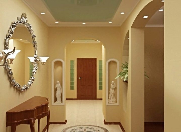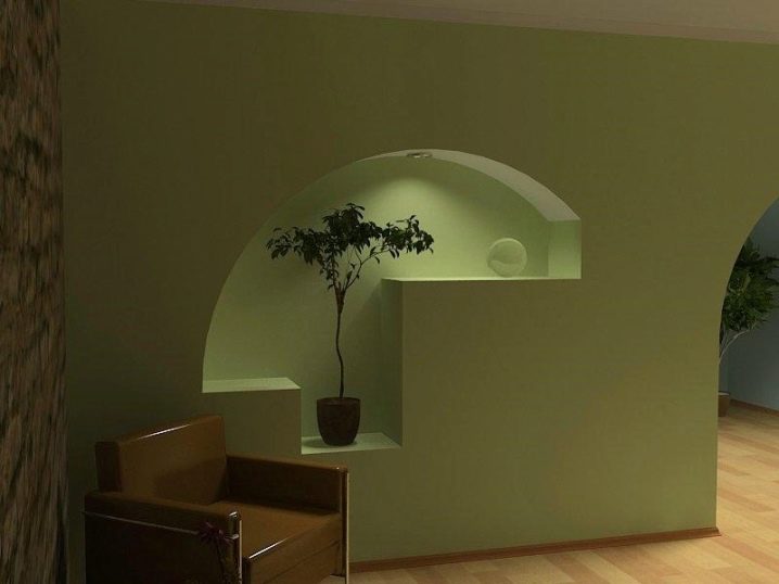 يحتوي المنتج على نصف قطر كبير ، لذلك لا يتطلب الحوائط الجافة إعدادًا خاصًا. يكفي ترطيبه من جانب المنعطف ، وثنيه في الاتجاه المطلوب ، وتثبيته على الإطار وتثبيته بمسامير. يجب أن يكون الهيكل الناتج معجونًا ورسمًا. يمكنك لصقها بورق الجدران أو وضع الجص الفني على السطح..