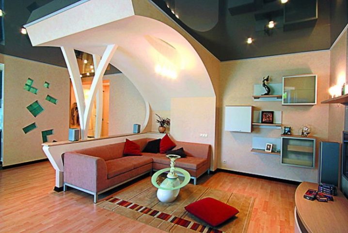 تم تصميم الشقة بالكامل بمشاركة دريوال. تقسيم المناطق مع الأقواس والأرفف والسقف – كل شيء مصنوع بشكل جميل من هذه المواد.