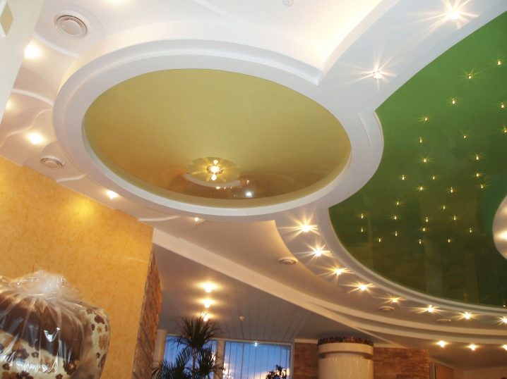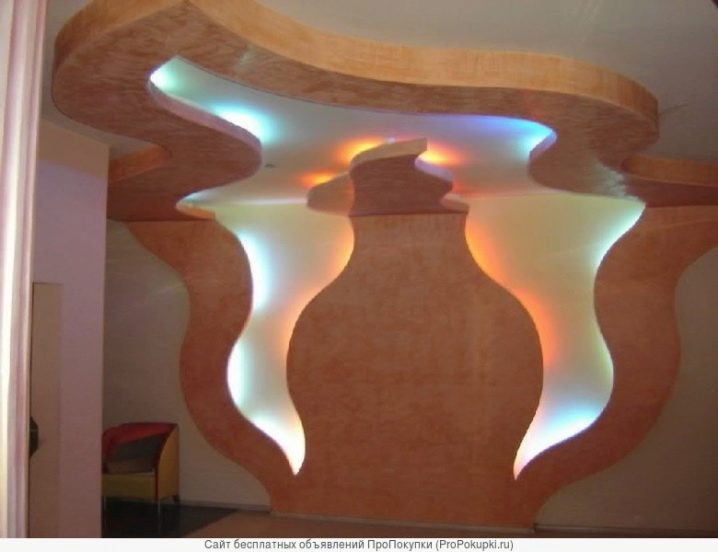 عندما تكون أجزاء الحوائط الجافة جاهزة ، يجب عليك تحديد السقف أو الجدار ، مع تحديد مواقع السحابات الداعمة. يجب ألا تقل المسافة بين الطبقات والسقف عن 8 سم للتهوية وتركيب تركيبات الإضاءة. يتم تثبيت الأسلاك الخاصة بالمصابيح والإطار من الملف الشخصي في نفس الوقت. يمكن جعل بتلات الزهور حجمية (المسافة البادئة من الطبقة الأولى) أو في مستوى واحد ، كل هذا يتوقف على قرارات التصميم.