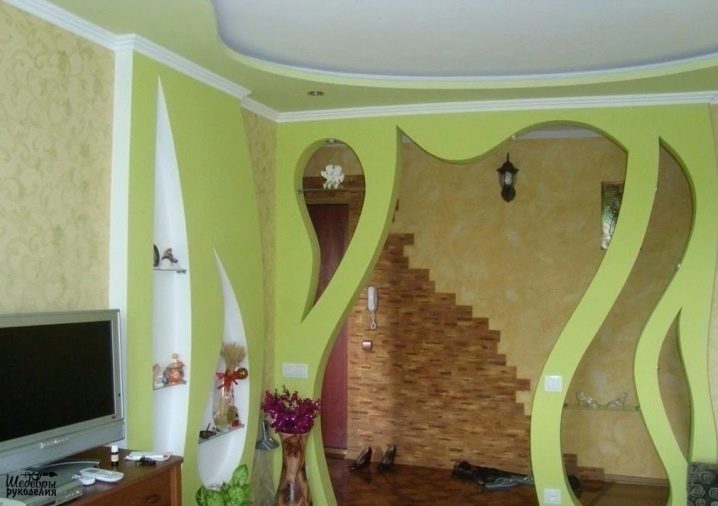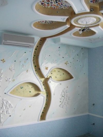 يتم إنتاج دريوال على أساس الجبس – مادة قوية وهشة في نفس الوقت. مع التركيب المتهور ، ينكسر بسهولة ، لكن الهيكل المصنوع بشكل صحيح يمكن أن يتحمل الكثير من الوزن (الكتب ، المعدات ، أدوات البناء معروضة على الرفوف). يبدو تزيين الغرف بجدران دريوال رائعة بشكل خيالي. سيحول أي غرفة مملة إلى قصة خيالية.