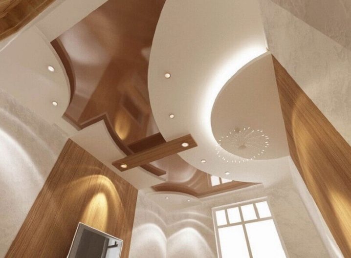 سقف جميل متعدد المستويات بمشاركة عدة أنواع من المواد.