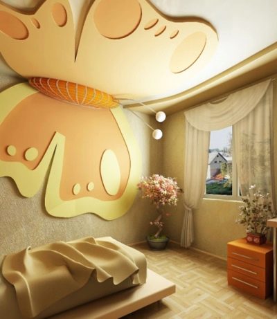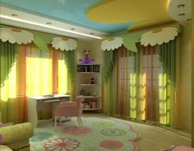 موضوع البابونج في السقف وتصميم الغرفة.