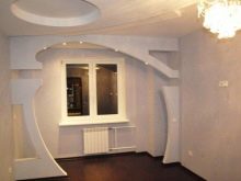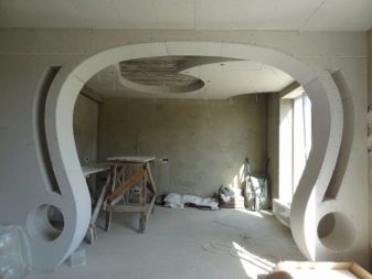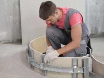 يحتوي المنتج على نصف قطر كبير ، لذلك لا يتطلب الحوائط الجافة إعدادًا خاصًا. يكفي ترطيبه من جانب المنعطف ، وثنيه في الاتجاه المطلوب ، وتثبيته على الإطار وتثبيته بمسامير. يجب أن يكون الهيكل الناتج معجونًا ورسمًا. يمكنك لصقها بورق الجدران أو وضع الجص الفني على السطح..