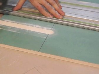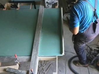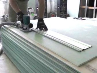- تحضير – في هذه المرحلة ، يتم إنشاء قوالب وقياسات مختلفة للحصول على خطوط طية متساوية. عادة ما يتم إنشاؤها من مواد الخردة: الخشب الرقائقي أو المعدن. يتم تثبيت القوالب مباشرة على الحوائط الجافة باستخدام براغي ذاتية التنصت ، واستنادًا إلى القالب ، سيعطي جهاز التوجيه قطعًا متساويًا. في هذه المرحلة ، عادةً ما يتم قطع سكة - عرضها يساوي العرض من حافة جهاز التوجيه إلى مركز جهاز التوجيه. هذا هو الجزء الصحيح لتحديد المواقع بدقة لمعداتك..
