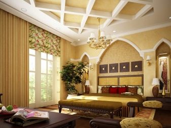يخضع تصميم الأسقف في تقاليد الجنسيات المختلفة للسمات المميزة لكل نمط. على سبيل المثال ، يحتاج النمط العربي إلى أنماط وخطوط وزخارف هندسية دقيقة. في هذه الحالة ، من الضروري تزيين السقف بإضاءة غنية ولوحة ألوان. من المهم التأكيد على ثراء وتعقيد التكوين..