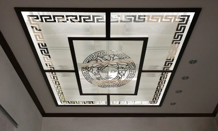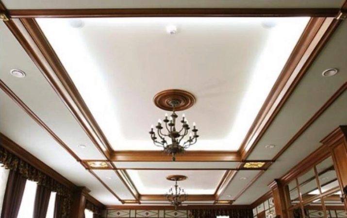 لكي يتناسب السقف بشكل أفضل مع الأنماط الداخلية الكلاسيكية ، من الأفضل عمل صندوق على شكل شكل هندسي.
