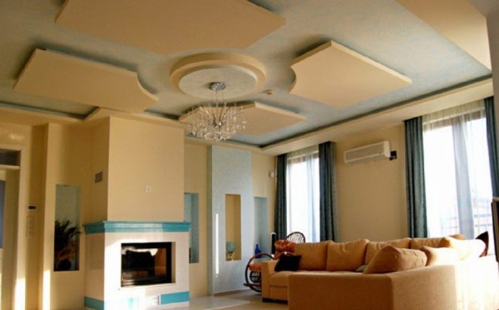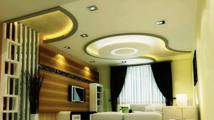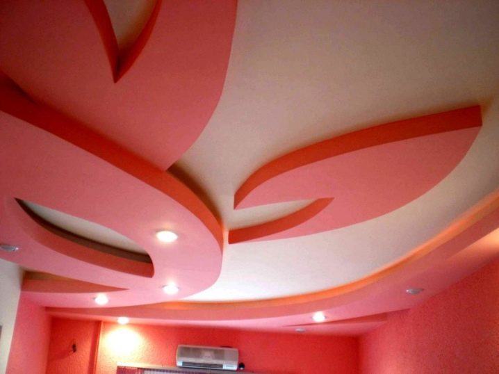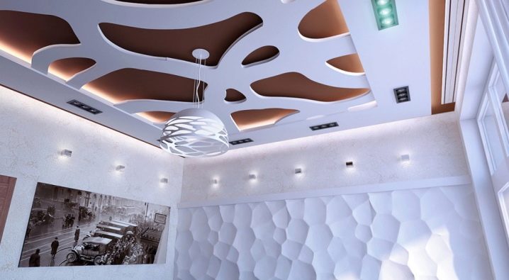 إذا كنت تستخدم الإبداع ، فإن إمكانيات سقف اللوح الجصي المعلق غير محدودة. يمكن قص أي شكل من الحوائط الجافة ، على سبيل المثال ، زهرة ، فراشات ، شمس ، زخارف مجردة غير متماثلة.