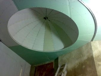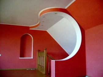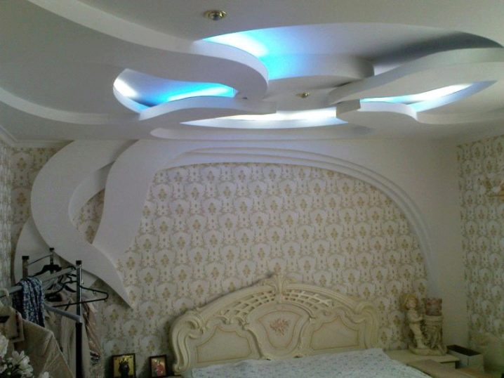 السقوف المتعرجة هي الأكثر تغيرًا في التصميم.. يمكن ثني الحوائط الجافة في اتجاهات مختلفة. يتيح لك ذلك إنشاء خطوط ناعمة ومنحنية ولولبية عن طريق تثبيت المادة على ملفات التعريف المتصلة بالسقف باستخدام مثبتات خاصة. في كثير من الأحيان ، تشبه هذه الهياكل بعض الأشكال المرتبطة بالسقف..