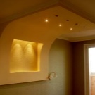 يمكنك تزيين السقف بلوح جصي أبيض أو بيج مع ملحق شد ، واختيار ، على سبيل المثال ، قاعدة الساتان للوحة.