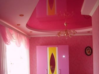 في غرف الأطفال ، يوجد عادة الكثير من الملحقات وثلاثة مجالات وظيفية: النوم والعمل واللعب. عادة ما تكون هذه الغرف صغيرة ، لذلك ليست هناك حاجة لإبراز أكثر من لهجة واحدة, حتى لا تفرط في مفهوم النمط العام. لأن السقف مصنوع لفترة طويلة, يجدر تسليط الضوء على مساحة للنوم أو العمل.