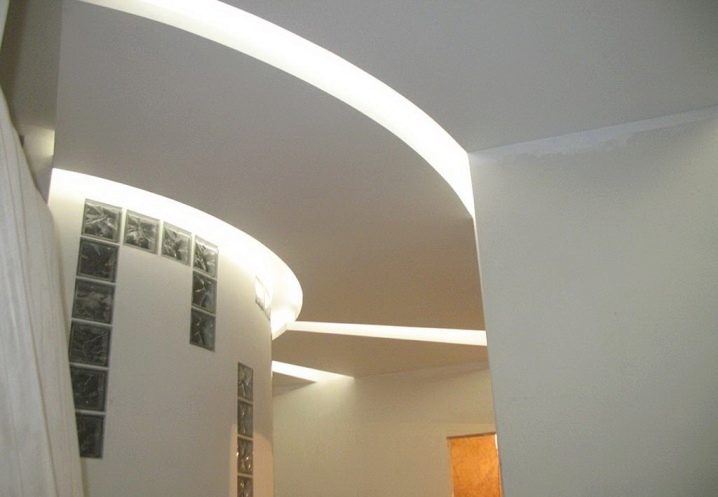 - نظرًا لخفة القاعدة ، لا تقتصر أسقف ألواح الجبس على عدد المستويات وتعقيد التصميم. بمساعدتهم ، يمكنك تغيير المساحة ، ارتفاع الجدران بصريًا..