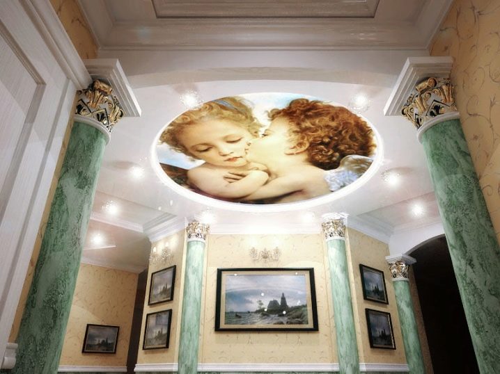 يتم إعطاء زخرفة السقف أهمية خاصة: في هذه المناطق لا يمكن أن يكون هناك الكثير منها., بعد كل شيء ، من المهم إظهار الفخامة في كل شيء.