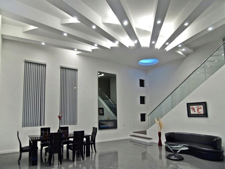 نظرًا لصغر حجمها وقوتها الكافية ، فإنها تتعامل مع مهمة إضاءة الغرفة عالية الجودة. حديثا أضواء كاشفة على وحدات الإنارة من نوع واحد معلقة منخفضة بدرجة كافية. تؤكد مقتضياتهم على اتجاهات التصميم الحديثة. السقوف التي تستخدم فيها بسيطة في التصميم.