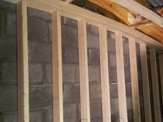 إذا تقرر استخدام الكتل الخشبية للإطار ، فيجب أن يتراوح محتوى الرطوبة فيها من 12 إلى 18٪ (لا يمكن توفير قيمة أقل ، والقيمة الأكبر تقلل من قيمة العمل بأكمله). أولاً ، يتم وضع الأخشاب أفقيًا وتثبيتها بواسطة المراسي. ثم يضعون الشرائح رأسياً ويعلقونها على هذا الشريط. يجب أن يبقى ما يقرب من 1 سم من العوارض إلى الشرائح ، وفي هذه الحالة ، تكون الخطوة بين الهياكل الرأسية 0.6 متر ، قبل شد الحوائط الجافة ، يُنصح بقياسها مرة أخرى بمستوى للتأكد من أن جميع الأجزاء متساوية.
