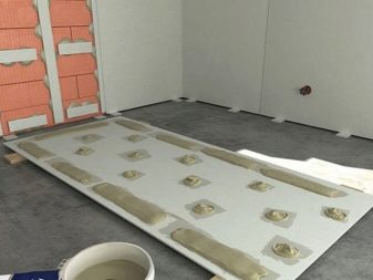 يمكن لصق ألواح الحوائط الجافة على جدار خرساني ذي سطح مستوٍ تمامًا دون تشوهات خارجية. يتم تقليل التحضير إلى التشريب بمزيج مطهر وبرايمر. ثم يتم تحديد السطح للصفائح ، ويتم تحضير الغراء وتركيب مادة التشطيب. يجب أن يكون هناك فجوة 0.5 سم بين الكتل ، ولا يُسمح بالمفاصل المتقاطعة. إذا كانت هناك انخفاضات ، فإن الأمر يستحق استخدام المنارات: سيؤدي ذلك إلى زيادة سرعة العمل..