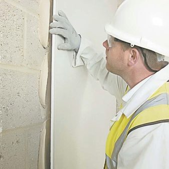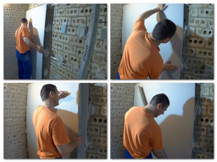 بعد إرفاق الورقة بالجدار ، لا يضغطون عليها بإحكام على الفور ، لكنهم ينظرون إلى التثبيت الصحيح. وإذا لزم الأمر ، يقومون بتصحيحه. تتم التسوية باستخدام قاعدة التجصيص ، والتي لا ينبغي الضغط عليها بشدة. حتى في مرحلة التحضير ، يلزم إزالة جميع البراغي البارزة والمثبتات الأخرى. يمكن تصحيح قاعدة الطوب بالجص من خليط من الأسمنت والرمل.