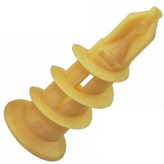 - غير مقيد. خارجيًا ، يشبه المسند خرطوشة بلاستيكية أو معدنية. يحتوي العنصر على قطع. في عملية تمرير المسمار داخل الحامل ، تبدأ التخفيضات في الانكماش. يعتبر هذا النوع من الوتد هو الأبسط.