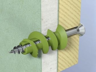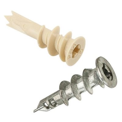 وتد الحلزون هو منتج شائع جدًا مصنوع من المعدن والبلاستيك. يتم الحصول على هذا التنوع في أغلب الأحيان. يتم توصيل الجزء بالورقة على النحو التالي: يتم عمل ثقب بقطر 6 مم ، ويتم تثبيت وتد ، ثم يتم قطعه في الحوائط الجافة باستخدام نفس التقنية المستخدمة في البرغي القياسي. بعد تثبيت المسامير ، يتم تثبيت المسمار مقاس 3.5 أو 4.5 مم.