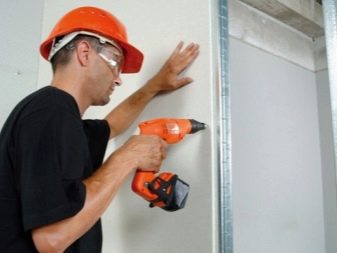 عند استخدام الأجهزة الكهربائية للبراغي في المسامير ، يجب أن تكون حذرًا للغاية ، لأن القوة المفرطة أثناء التثبيت يمكن أن تلحق الضرر بورقة الحوائط الجافة. يحظر حفر حفرة في وضع التثقيب للعمل مع ألواح الجبس.