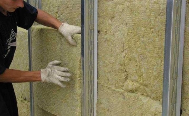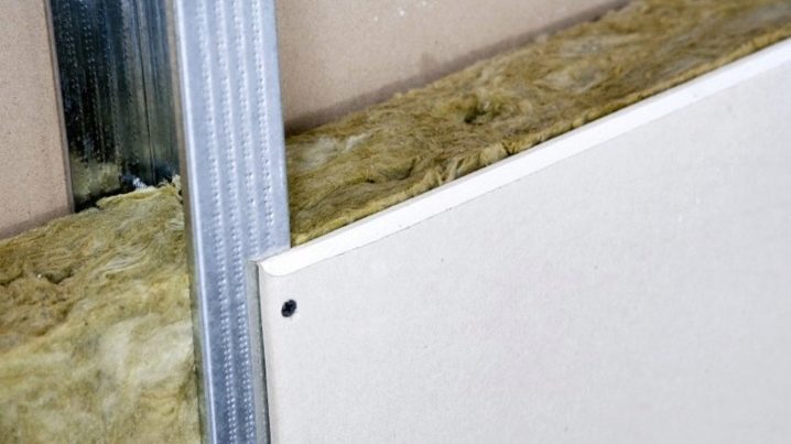 ثم يأتي دور الطبقة العازلة – إن أمكن ، قبل تثبيت الصفيحة ، تمتلئ الفجوات بين جميع الملامح بالرغوة أو ألواح الصوف المعدني.