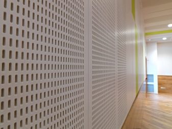 قاعة سينما نادرة ، قاعة مؤتمرات تستغني عن هذه المواد. لا يتداخل الحوائط الجافة المثقبة تقريبًا مع تغلغل الموجات الصوتية من غرفة إلى أخرى ، لذلك لا يمكن استخدامها إلا بالاقتران مع الحلول الأخرى.