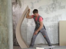 ليس من الضروري إنشاء الهيكل بأكمله من اللوح الجصي – حيث تبين أن تزيين سطح عمود خرساني حقيقي بهذه المادة يكون أكثر أمانًا. ولكن إذا تقرر مع ذلك بناء عنصر زخرفي على وجه التحديد من دريوال ، فلا ينبغي أن يسبب ذلك أي صعوبات. تتمثل الخطوة الأولى في وضع علامة بأقلام الرصاص أو علامات على سقف المحيط الخارجي للهيكل المستقبلي.