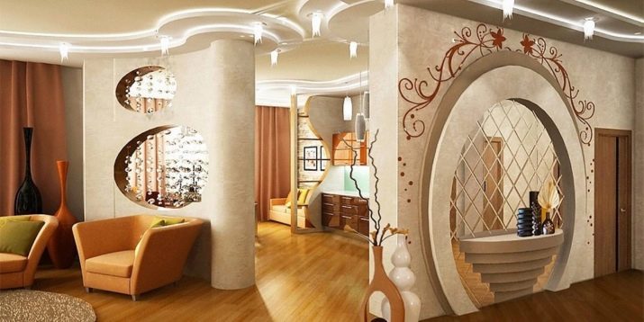لا يحاولون دائمًا إبراز بعض العناصر بمساعدة الحوائط الجافة – فهو مصمم في كثير من الحالات لإغلاق شيء يفسد المظهر الأنيق للغرفة ، على سبيل المثال ، المبرد أو الأنابيب.