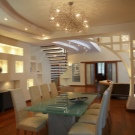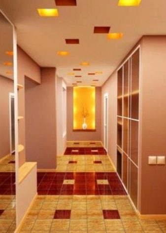 السقف ، حتى لو كان يحتوي على “أرضية” واحدة فقط ، لا يتم طلاؤه بأكثر من ثلاثة ألوان. تخلق مصابيح النيون منظرًا جذابًا للأفق ، بغض النظر عن اللون المختار وأسلوب الممر بأكمله..