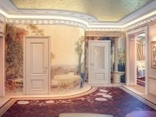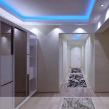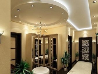 تزيين الرواق في شقة بالحوائط الجافة ليس أكثر صعوبة من وضعه على الأرض. غالبًا ما يتم إعداد الأسقف من هذه المواد. في غرف المدخل الصغيرة ، عادةً ما يتم تثبيت هيكل أحادي الطبقة ، مكملًا بقواعد السقف ومزين بالبوليسترين الموسع. يتم اختيار تركيبات الإضاءة بعناية لخلق شعور بارتفاعات الجدران العالية.