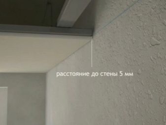 يتم نقل الخطوط التي تم إنشاؤها إلى الأرض ، وسيساعد مستوى المبنى أو خط التوصيل على تجنب التشوهات. يتم تثبيت الملامح المقطوعة مسبقًا أولاً على الأرض ثم إلى السقف.