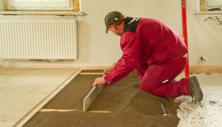 وضع اللوح الجصي على الأرض له خصائصه الخاصة. ترجع المخاوف في هذا الصدد إلى حقيقة أن المادة تم إنشاؤها في البداية كمواد مثبتة على الحائط لا تحمل أحمالًا كبيرة. ولكن مع الاستخدام السليم للطلاء عالي الجودة ، لن تنشأ مشاكل. تتمثل الخطوة الأولى في الحد الأقصى لتسوية القاعدة (يُنصح ليس فقط باستخدام ذراع التسوية ، ولكن أيضًا الردم بالبيرلايت والطين الموسع والرمل). أفضل خيار ، وفقًا لمعظم المصلحين ، هو البيرلايت..