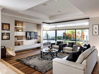 - أفقي تخصص. يتم استخدامه في أي غرفة مهما كان حجمها. بصريا ، هذا الشكل يوسع الغرفة. خاصة إذا قمت بدمجه مع أثاث منخفض..