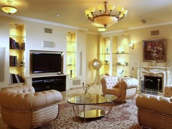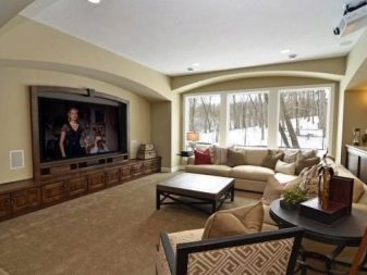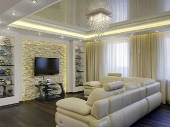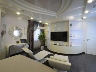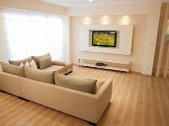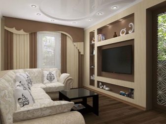 - بيضاوي تخصص. إنه حل أصلي. مناسب للغرف الكبيرة فقط. يتم وضع التلفزيون في وسط الدائرة ، مما يضفي على الغرفة مظهرًا أنيقًا وعصريًا.