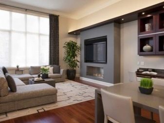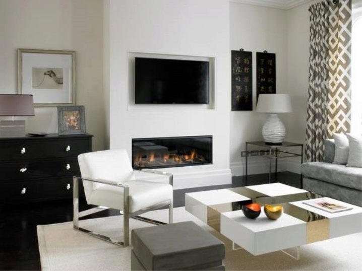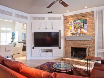 يمكن أيضًا تثبيت مدفأة زخرفية أسفل التلفزيون ، والتي لا تؤدي أي وظيفة بخلاف التزيين. يمكنك أيضًا تركيب مدفأة كهربائية ، لكن الأمر يستحق الاهتمام بالسلامة.