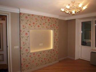 - ورق الجدران. هم خيار التشطيب الأرخص. في كثير من الأحيان ، بالنسبة لمكانة معينة ، يستخدمون نفس الخلفية التي تم لصق الغرفة بها. في هذه الحالة ، يندمج التلفزيون تمامًا مع باقي الأجزاء الداخلية ويتم إخفاءه..