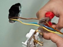 يتم توصيل الأسلاك مباشرة إلى المقبس ، ولكن يجب أن ينتهي عزل المصنع مباشرة داخل الصندوق – وهذا شرط للسلامة من الحرائق.