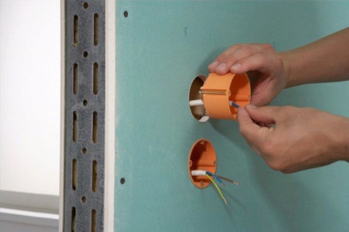 بهذا يكتمل تركيب المقبس في لوح الجبس. الخطوة التالية هي تثبيت مقبس ، مفتاح. لا يختلف المبدأ عن كيفية تثبيت الأجهزة الكهربائية في مقبس عادي. الشرط الخاص الوحيد هو أنه لا يجب عليك طرق المقبس بمطرقة ، حيث يمكنك كسر الصفيحة ، وهذا سيؤدي إلى استبدالها وتركيب مقبس جديد..