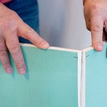 يتم قطع الحوائط الجافة المقاومة للرطوبة بنفس الطريقة المعتادة ، فهي منشورة ومثنية تمامًا. من السهل جدًا قطع جميع الثقوب الضرورية ، مثل فتحات المقابس ، قبل التثبيت.