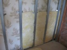 - لا تبخل على الصوف المعدني عند تحضير الإطار. دريوال ، على الرغم من أنه يمتص الصوت ، إلا أنه لا يكفي لرفض وضع مواد إضافية.