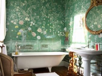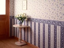هناك خيار آخر لإنهاء جدران الجصي في الحمام أو المطبخ – ورق جدران من الفينيل أو الألياف الزجاجية. هذه المادة الكثيفة لا تخاف من بخار الماء.