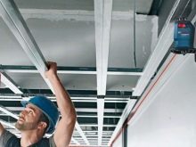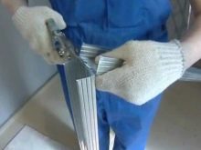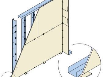 بعد ذلك ، يتم تجربة ملف تعريف الدليل وتقطيعه إلى الأقسام المطلوبة. عندما يكون الملف الشخصي جاهزًا ، يتم تثبيته على الأسطح بالمسامير.. من الأفضل لف الملف الأفقي على طول المستوى, بحيث يكون الهيكل متساويًا وقويًا. بمجرد أن تصبح الأدلة جاهزة ، تصنع الزوايا من نفس الملف الشخصي (إذا كان الهيكل لا ينتهي بجدار أو أرضية).
