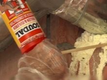 - بعد تنفيذ العمل ، يقومون بالتنظيف وتسوية السطح. تتم إزالة الفائض بسهولة باستخدام الأسيتون أو أي مذيب آخر. بعد أن تصلب الرغوة ، لا يمكن إجراء التنظيف إلا بالوسائل الميكانيكية..