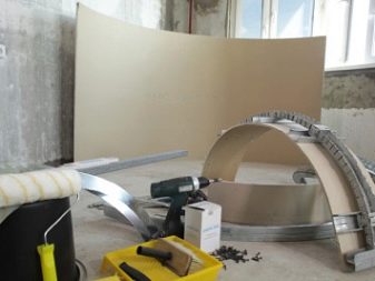 بالنسبة للجمال ، ومن يسعون لعمل شيء غير عادي وجميل في المنزل ، ستحتاجون إلى نوع مصمم من ألواح الجبس ، والتي تسمى أيضًا مقوسة نظرًا لأن سمكها لا يتجاوز 5 ، 6 ، وأحيانًا 6.5 ملم ، يمكن ثنيه بسهولة. لكي لا ينفجر مثل هذا المنتج من الأحمال ، فإنه يحتوي على ما يصل إلى طبقتين من التعزيز.