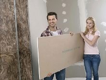 اختيار الخيارات للجدران أو الجدران المستقبلية في الحمام: يمكنك أيضًا استخدام دريوال لهذه الغرفة ، بمساعدة خيار مقاوم للرطوبة ، سيكون من الممكن تجنب التبلل وتفريغ المادة.