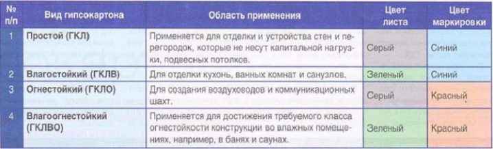 تحتوي ورقة الحوائط الجافة القياسية على مؤشر ثابت واحد فقط ، ويمكن أن تختلف جميع الأنواع الأخرى حسب نطاق استخدامها. من أجل الاختيار الصحيح للمواد ، تحتاج إلى فهم النوع المناسب للعمل.