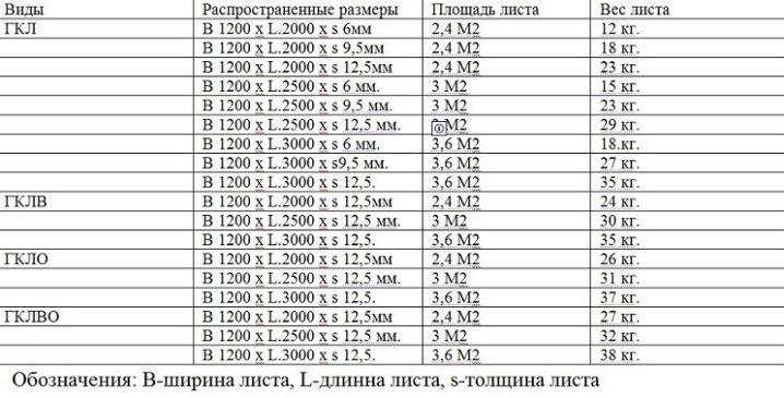 تتيح لك معرفة أنواع المنتجات وأحجامها اختيار المواد المناسبة للإصلاح. إذا كنت بحاجة إلى إنهاء الغرفة بأكملها ، فستكون الأوراق القياسية هي الخيار الأفضل. في حالة وجود ارتفاع غير موحد للجدران في الغرفة ، يكون من الأنسب شراء ملاءات غير قياسية ، وهي نصف الحجم.. بالنسبة للأماكن التي يجب أن تتحمل الأحمال الثقيلة ، يجب استخدام النوع الأكثر سمكًا من المنتج.