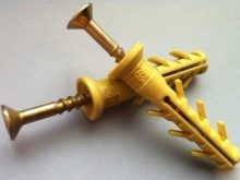 ومع ذلك ، على عكس هذا الخيار مولي – وتد معدني, وبالتالي يمكنها تحمل قوة تحميل كبيرة. يتم أيضًا إدخال وتد “المولي” في الفتحة الموجودة في الصفيحة ، ثم يتم تثبيتها حتى تتوقف ، مما يستلزم فتح العنصر ، ثم يتم تثبيت لوح الجبس.